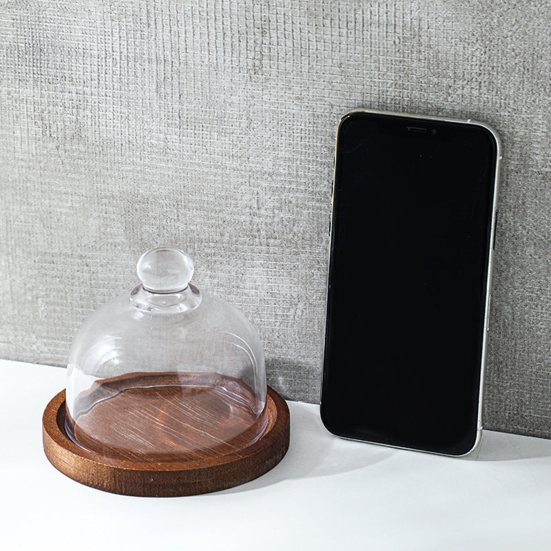 Elevate your dessert presentation with this elegant Gourmet Cake Dome Display. Crafted with a sturdy wooden base and a clear glass dome, this versatile stand allows you to beautifully showcase your homemade cakes, pastries, and other delectable treats.